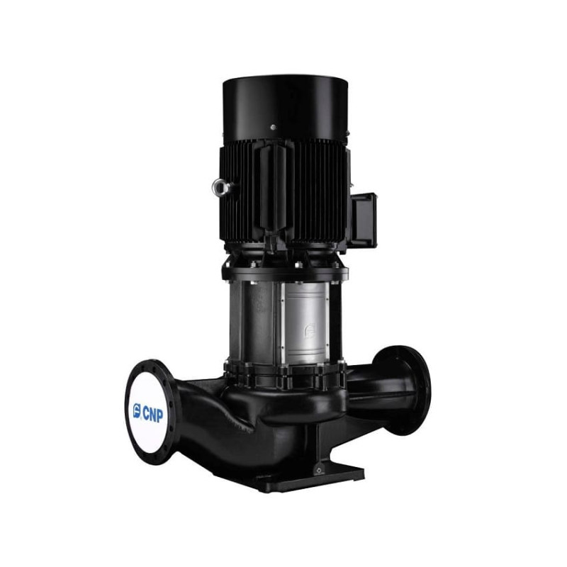 Электронасосы CNP серии TD – одноступенчатые, центробежные, рядные, циркуляционные электронасосы, с соосным размещением патрубков («ин-лайн»), оборудованные стандартным двигателем и уплотнением торцовым. Конструкция этих электронасосов с «сухим» ротором делает их менее чувствительными к включениям в перекачиваемой среде, по сравнению с подобными электронасосами с «мокрым» ротором. Перекачиваемые жидкости: чистые, маловязкие, неагрессивные и взрывобезопасные жидкости без твердых или длинноволокнистых включений. Перекачиваемая жидкость не должна механически или химически воздействовать на материал электронасоса. Если кинематическая вязкость или плотность перекачиваемой жидкости выше, чем у воды, гидравлические характеристики электронасоса уменьшаются, а потребляемая мощность – увеличивается. Температура перекачиваемой жидкости: от -15°С до +110°С. Электронасосы серии TD являются моноблочными, состоящими из стандартного асинхронного электродвигателя и насосной части, соединенных переходным фланцем. Входной и выходной патрубки имеют одинаковые диаметры и расположены на одной линии. Уплотнение по линии вала – торцовое, одинарное, неразгруженное, уплотнение насосной камеры – уплотнительное кольцо, круглого сечения. Вал электронасоса жестко соединен с валом электродвигателя при помощи специальной муфты. Конструкция электронасоса позволяет снять головную часть электронасоса (двигатель с переходным фланцем, рабочим колесом) без полного демонтажа электронасоса с трубопровода. Стандартный асинхронный электродвигатель: степень защиты: IP55; класс изоляции: F.