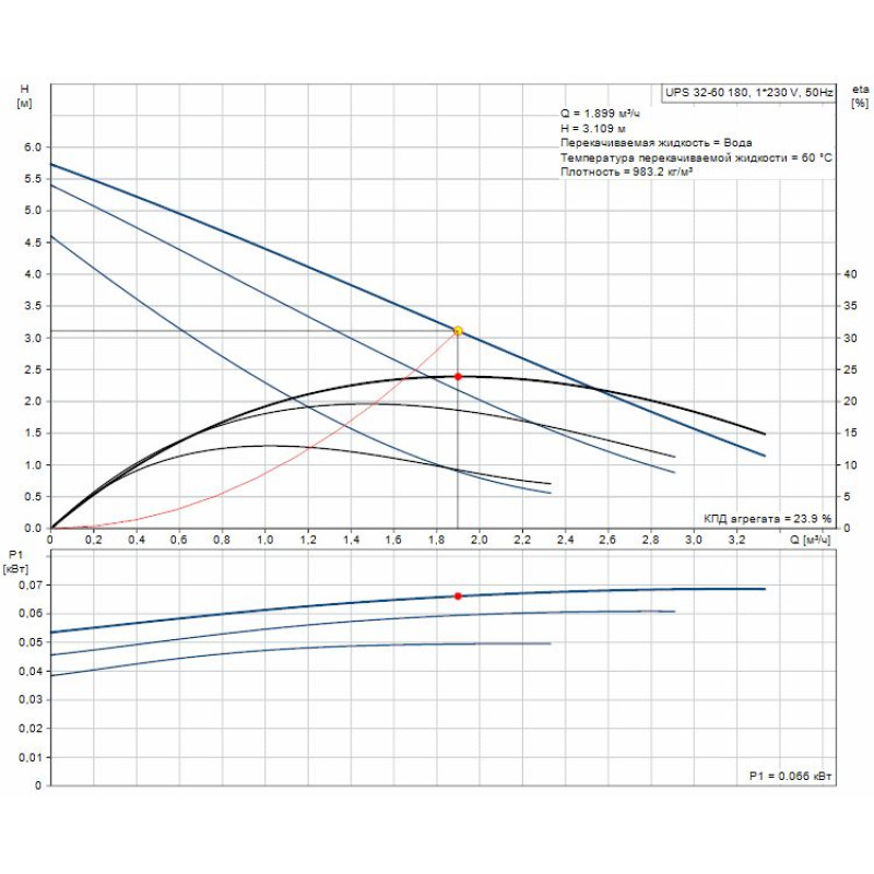 Насос циркуляционный Grundfos UPS 32-40, 1x230 В, монтажная длина 180 мм, 25В/35В/45В 9H/SEE