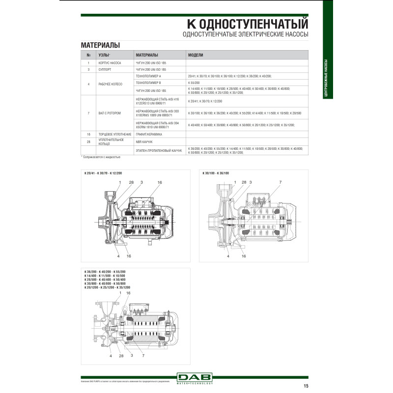 Закрытого типа, асинхронный, с наружной вентиляцией. Ротор вращается в шариковых подшипниках увеличенного размера, что обеспечивает низкий уровень шума и длительный срок службы. Стандартная встроенная термо-амперометрическая защита. В однофазном исполнении предусмотрен стационарно установленный конденсатор. Для защиты трёхфазного двигателя рекомендуется использовать дистанционные перегрузочные выключатели согласно действующим местным нормативам. Конструкция соответствует CEI 2-3. Двигатели IE2 в стандартной версии от 0,75 кВт до 5,5 кВт - IE3 ≥ 7,5 кВт.