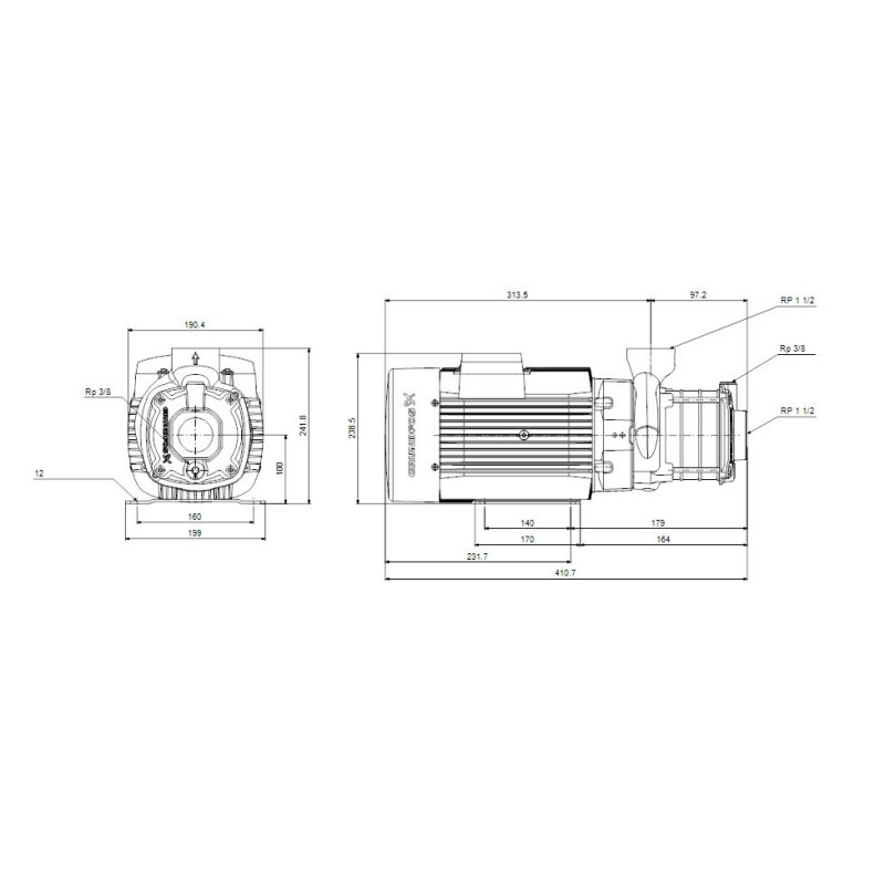 | Присоединение на напорной стороне | Rp 1½ |