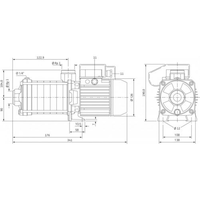 | Присоединение на напорной стороне | Rp 1 |