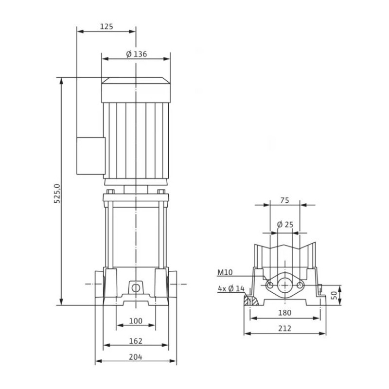 Многоступенчатый нормальновсасывающий вертикальный высоконапорный центробежный насос линейного типа. Данный насос имеет компактную конструкцию и оснащен сквозным насосным валом электродвигателя и не зависящим от направления вращения скользящим торцовым уплотнением. Секции, рабочие и ведущие колеса выполнены из нержавеющей стали. Корпус насоса выполнен из чугуна с катафорезным покрытием с подсоединениями под овальный фланец. Насос подходит для водораспределения и повышения давления, промышленных циркуляционных систем, технологической воды, контуров циркуляции охлаждающей воды. Его также можно использовать в моечных установках, в системах орошения.