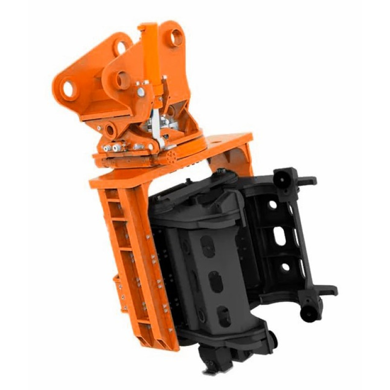 Оснащён боковым и нижними универсальными шпунтовым зажимом что позволяет осуществлять захват свайного элемента прямо с земли, точное позиционирование, погружение и извлечение – выполняет один человек: оператор вашего экскаватора. Такелажные работы полностью исключены.