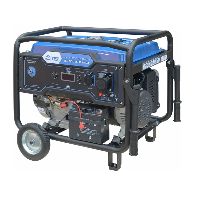Бензогенератор ТСС SGG 8000EHNA 160014 предназначен для выработки электроэнергии с основными характеристиками: напряжение - 220 вольт, частота 50 Гц, оснащен разъемом для подключения блока автоматики и колесным комплектом и ручками, для удобства передвижения.