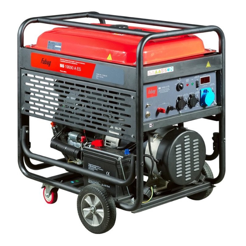 BS 19000 A ES – однофазный бензиновый генератор от FUBAG номинальной мощностью 17,0 кВт. Оптимальный выбор для работы с большим количеством высоконагруженных однофазных потребителей. Высокий ресурс работы электростанции обеспечат профессиональный V-образный 2-х цилиндровый OHV-двигатель FUBAG. Синхронный альтернатор с медными обмотками ротора и статора оснащен системой регулировки выходного напряжения (AVR), который гарантирует стабильное выходное напряжение и частоту тока. Надежный сварной топливный бак объемом 70 л обеспечит до 9 часов работы без дозаправки на 75% нагрузки и оснащенный указателем уровня топлива и фильтром-сеткой.
