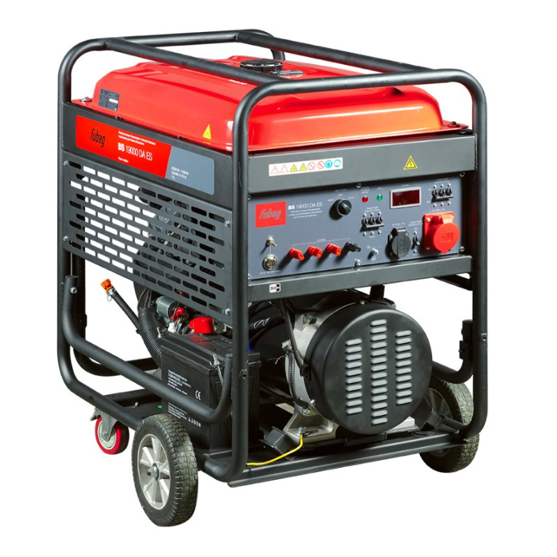 BS 19000 DA ES – трехфазный бензиновый генератор с электростартером. Электростанция способна обеспечивать электроснабжением частные владения, строительные площадки или небольшое производство. Высокий ресурс работы станции обеспечат профессиональный V-образный 2-х цилиндровый OHV-двигатель FUBAG. Синхронный альтернатор с медными обмотками ротора и статора оснащен системой регулировки выходного напряжения (AVR), который гарантирует стабильное выходное напряжение и частоту тока.