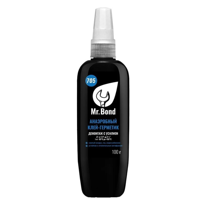 Анаэробный герметик Mr.Bond 705 — это контактный гель синего цвета на акриловой основе, предназначенный для герметизации и средней фиксации резьбовых соединений с возможностью демонтажа с усилием. Обеспечивает надёжную защиту от протечек, коррозии и вибрационных нагрузок. Работает в температурном диапазоне от -50 °C до +150 °C, подходит для профессионального и бытового использования. Упаковка объёмом 100 г удобна для применения в монтажных и ремонтных работах.