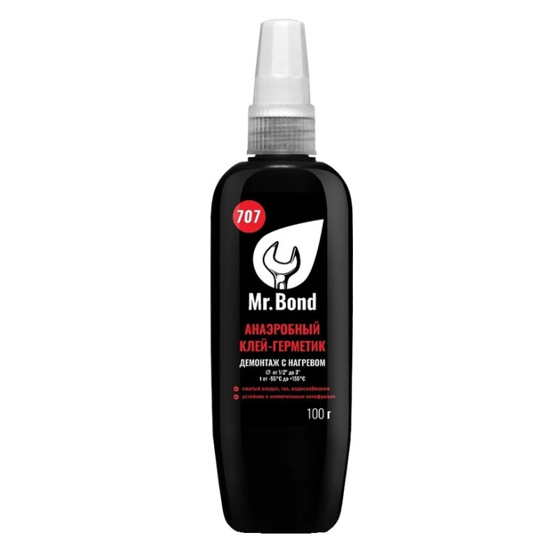Анаэробный герметик Mr.Bond 707 — это контактный гель красного цвета на акриловой основе, предназначенный для надёжной фиксации и герметизации резьбовых соединений с высокой степенью фиксации. Демонтаж возможен только с предварительным нагревом. Обеспечивает устойчивость к вибрациям, утечкам и коррозии. Полное высыхание происходит в течение 24 часов. Рабочий температурный диапазон — от -50 °C до +150 °C. Упаковка 100 г идеально подходит для профессионального использования в условиях повышенных нагрузок.