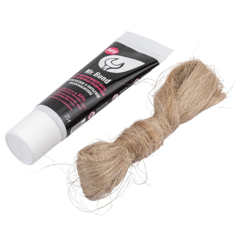 Комплект для уплотнения резьбы Mr.Bond состоит из герметизирующей пасты (25 г) и льна (7 г), обеспечивая надёжную герметизацию резьбовых соединений в системах водоснабжения и отопления. Подходит для работы при давлении до 8 бар и температуре окружающей среды до +140 °C. Общий вес набора составляет 32 г. Компактный и удобный в использовании комплект отлично подойдёт как для домашних мастеров, так и для профессионалов.