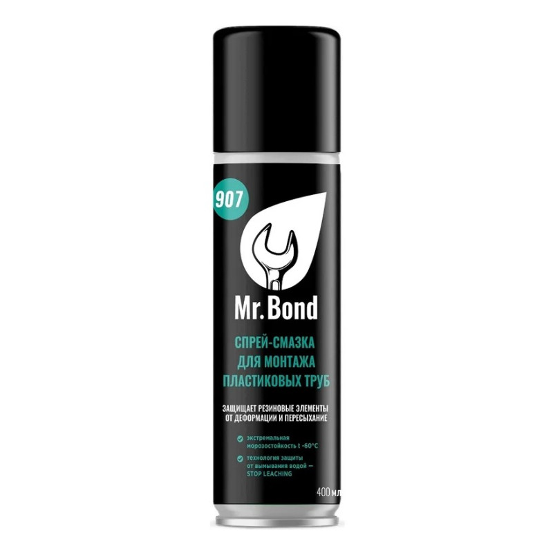 Спрей-смазка Mr.Bond для монтажа пластиковых труб представляет собой аэрозоль на основе полидиметилсилоксана (30%) и пропан-бутана (30%), обеспечивающий лёгкую и безопасную сборку пластиковых соединений без повреждения уплотнителей. Подходит для использования при температурах от -40 °C до +200 °C. Выпускается в удобном формате объёмом 0,4 л, идеально подходит для профессионального и бытового применения при монтаже водопроводных и канализационных систем.