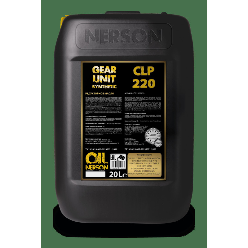 Трансмиссионное масло NERSON OIL GEAR UNIT Synthetic CLP 150 20л (PAO)