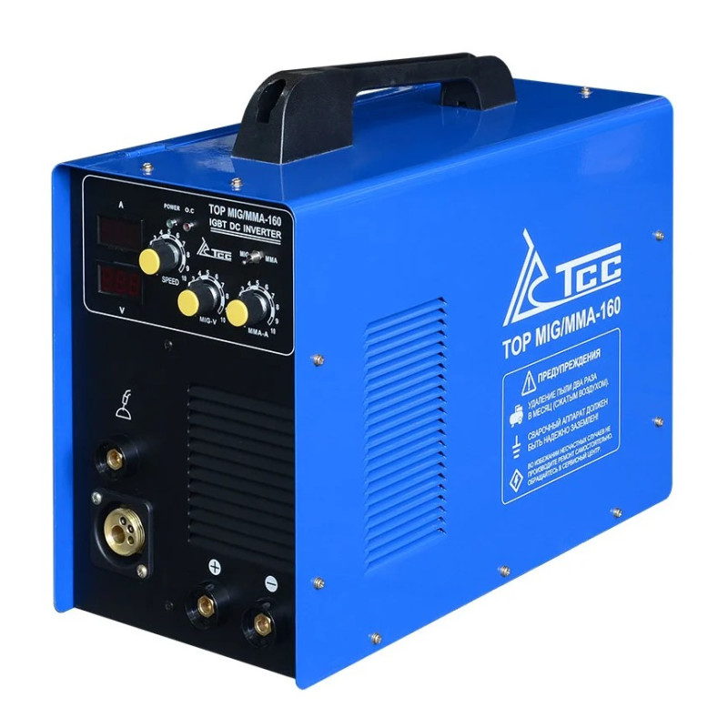 Сварочный инвертор ТСС TOP MIG/MMA-160 небольшое удобное устройство, при помощи которого можно проводить сварку ручными электродами. Благодаря своей компактности и неплохому ПВ можно использовать аппарат для проведения сварочных работ любой сложности.