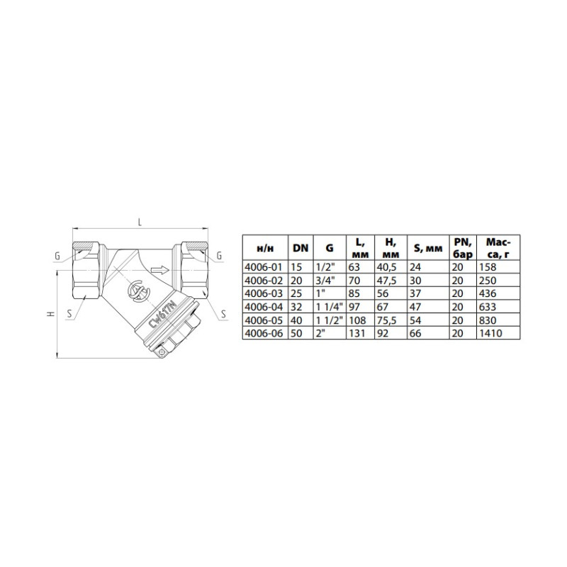 Фильтр магнитный Y-обр лат 4006 Ду20 Ру20 м/м 100C сл проб Aquasfera 4006-02