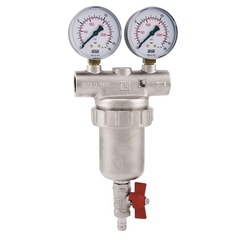 Поставляется с извлекаемым картриджем, двумя манометрами и краном со штуцером для слива загрязнений.