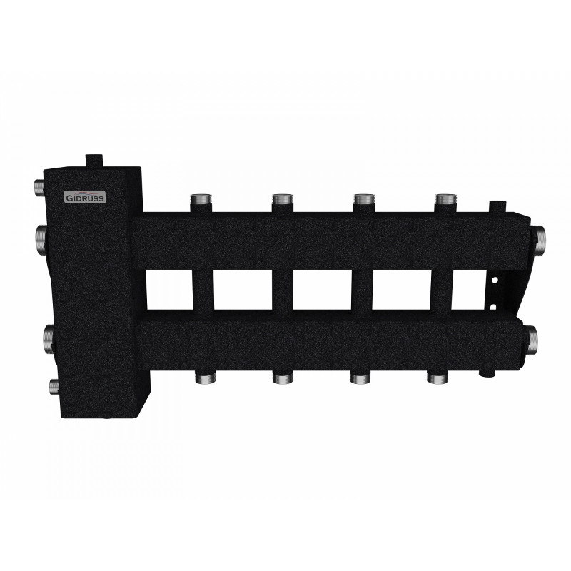 Коллектор с гидрострелкой (балансировочный коллектор) применяется в системах отопления до 1200 м² для соединения одного или нескольких котлов с 5 потребителями в конфигурации 2+2+1.
