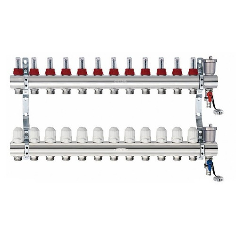 Блок коллекторный Kromwell с термостатическими клапанами и расходомерами 1" 12 выходов 3/4" "евроконус"
