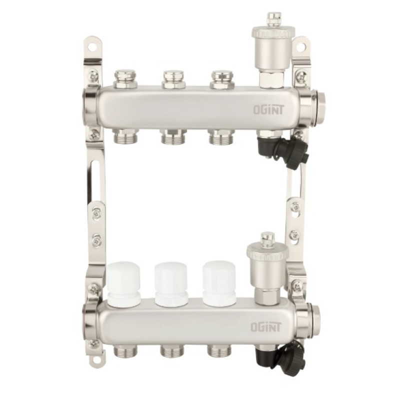 Группа коллекторная Ogint из нержавеющей стали с диаметром 1" и 9 выходами — это надежное решение для распределения теплоносителя в системах отопления. Концевой коллектор с номинальным диаметром 25 мм и выходами диаметром 20 мм обеспечивает максимальное рабочее давление до 10 бар и может выдерживать температуры до 95°C, что делает его идеальным для использования в различных условиях.