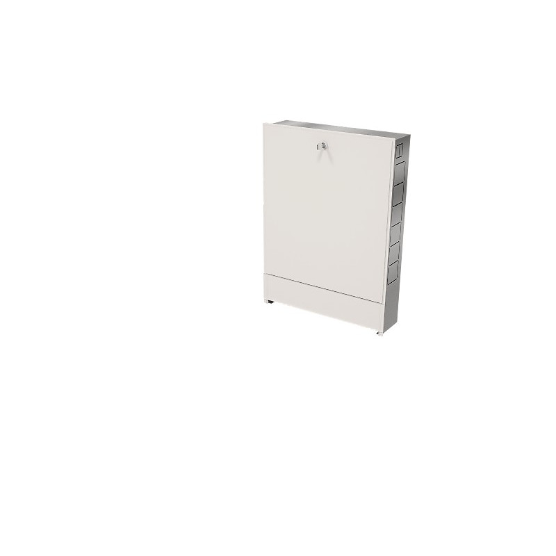 Шкаф изготовлен из цельного стального листа. Технология изготовления без применения сварки. Корпус шкафа выполнен из оцинкованной стали. Передние панели окрашены порошковой краской RAL 9016 с предварительным нанесением фосфатной пленки для придания антикоррозионных свойств изделию. В боковых стенках корпуса шкафа выполнена перфорация, сегменты которой удаляются в любом удобном месте для подсоединения трубопроводов.