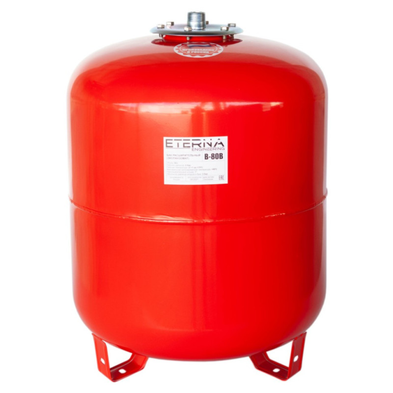 Расширительный бак ETERNA В-80В характеризуется прочной конструкцией и выполнен из углеродистой стали. Важную роль в защите от гидроударов играет специальная расширяемая мембрана, которая изготавливается из белой пищевой резины. Устройство оснащено устойчивыми опорами, присоединительный штуцер расположен сверху.