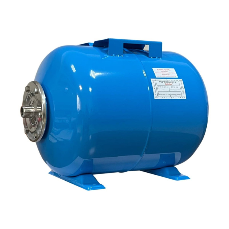 Гидроаккумулятор горизонтальный голубой 50 л LadAna 110102010/1 - предназначен для поддержания давления в системах водоснабжения, компенсации гидроударов и накопления воды.