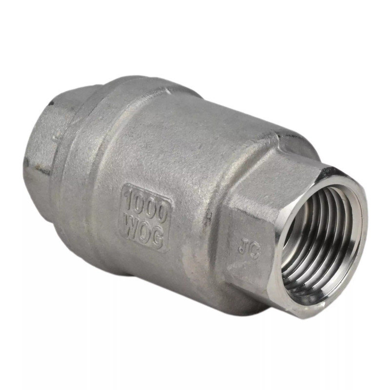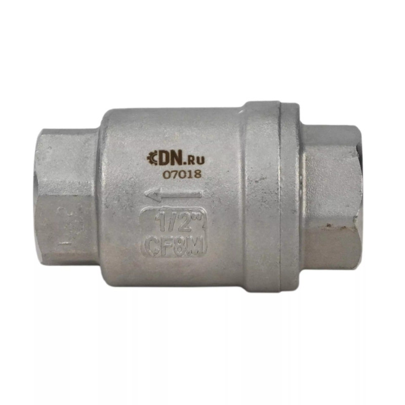 Клапан обратный DN.ru VCS3232P-T Ду15 Ру16, корпус- нержавеющая сталь 316, уплотнение - PTFE, пружинный, муфтовый