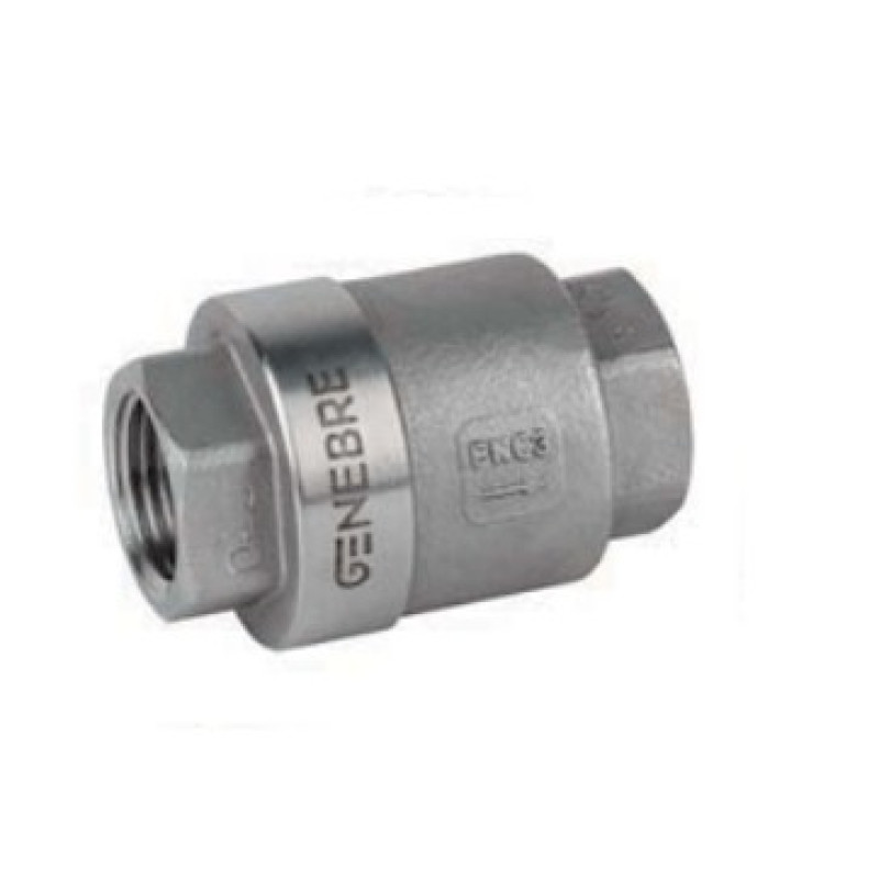 Клапан обратный дисковый резьбовой из нержавеющей стали GENEBRE 2416 — стальной резьбовой обратный клапан с диском. Применяется в трубопроводных системах для предотвращения смены направления движения потока при падении давления.