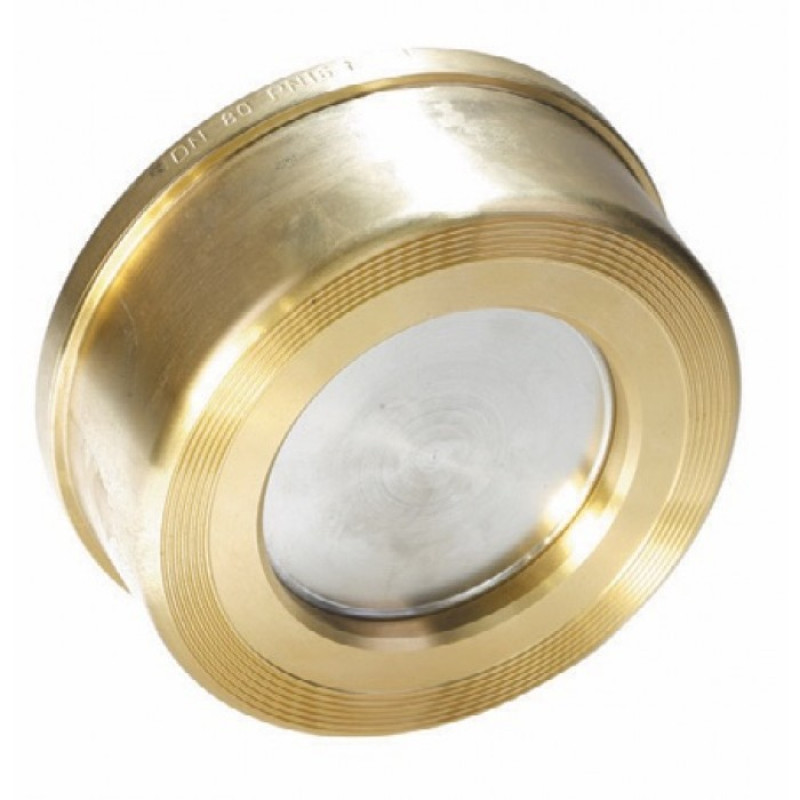 Клапан обратный межфланцевый, дисковый пружинный, корпус из латуни, диск из нержавеющей стали.
