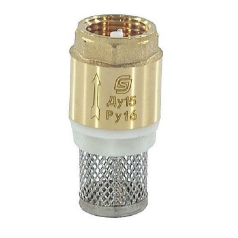 Клапан обратный SantechSystems латунь осевой Ду15 м/м с приемной сеткой