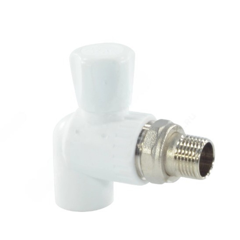 Кран PP-R бел шар Дн20х1/2" НР угл д/рад РосТурПласт