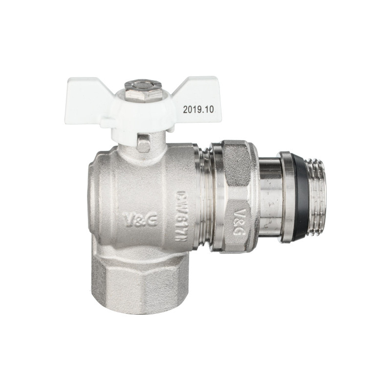 Кран шар. баб. с американкой 20 вода угловой V&G Optima (ручка-бабочка