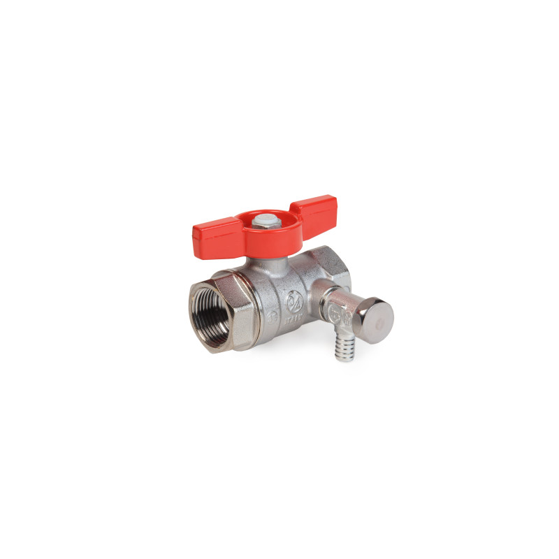 Кран шаровой со сливом, резьба внутренняя/внутренняя, стандартный проход, хромированный, ручка - бабочка красная.