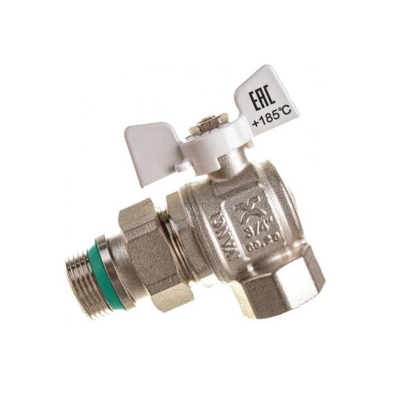 Кран шар. Superior угловой с разъем. Со. и стоп. кол., белая ручка-бабочка, вн.-на.рез.3/4" IVANCI