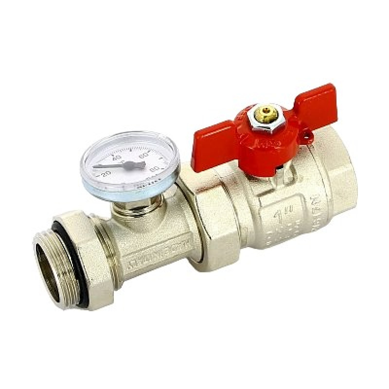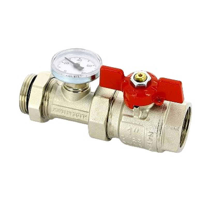 Кран Uni-Fitt НВ 1" с разъёмным соединением и термометром для кол. групп, полнопроходной, бабочка