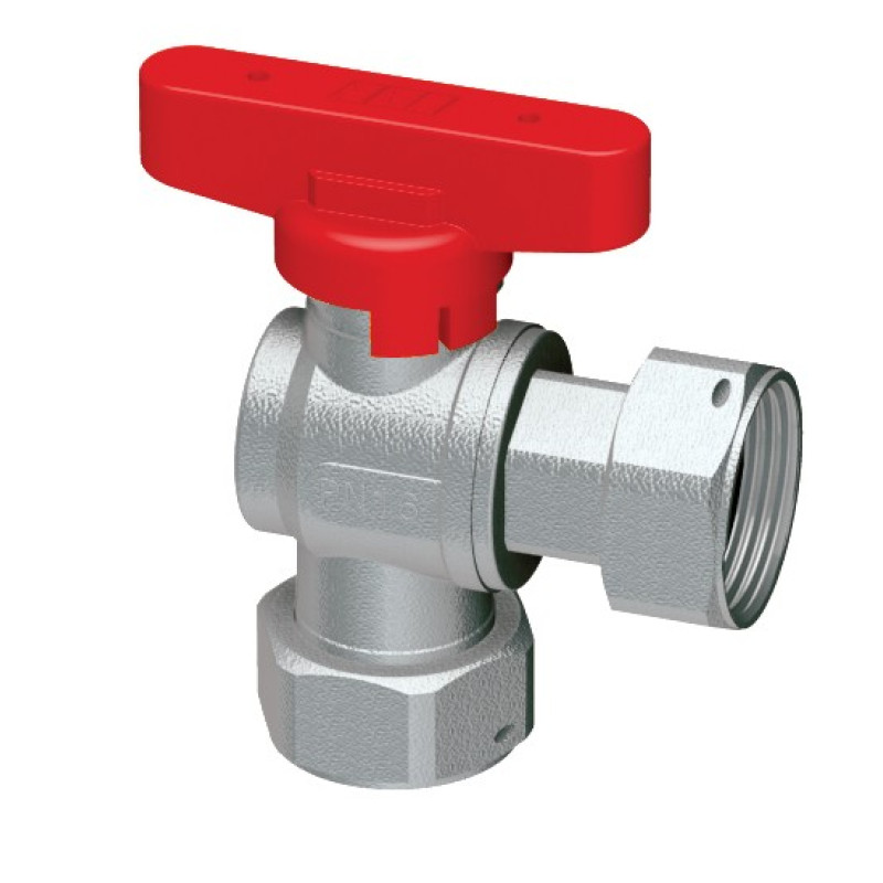 Шаровой кран FAR хром. 3/4"накид.гайки бабочка красный угловой