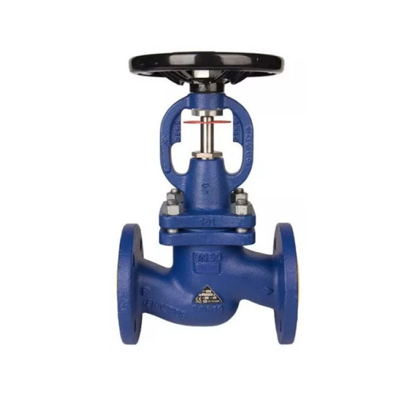 Запорный вентиль может устанавливаться в любом положении. Имеет сильфонное уплотнение по штоку и не требует сервисного обслуживания. Направление потока должно совпадать со стрелкой на корпусе.