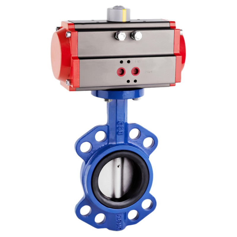Затвор дисковый с пневмоприводом используется для воды, нейтральных рабочих сред, теплоносителя, газов. Корпус затвора выполнен из чугуна GG25, диск AISI304, уплотнение EPDM.