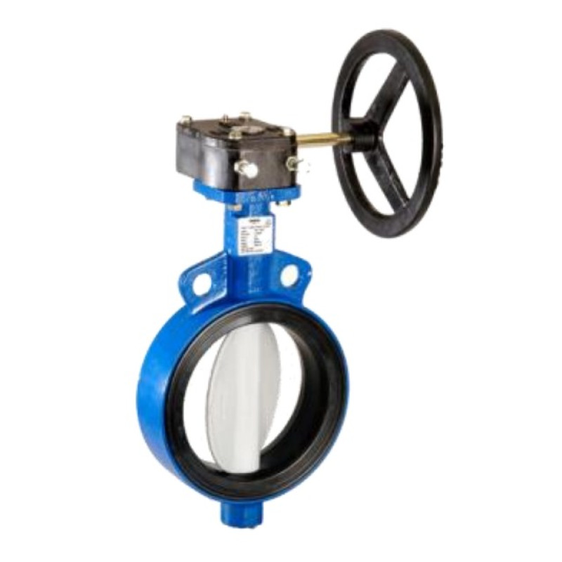 Затвор дисковый DelVal поворотный межфланцевый Чугун/нерж CF8/EPDM , редуктор, 10" DN250 PN10, цвет - синий
