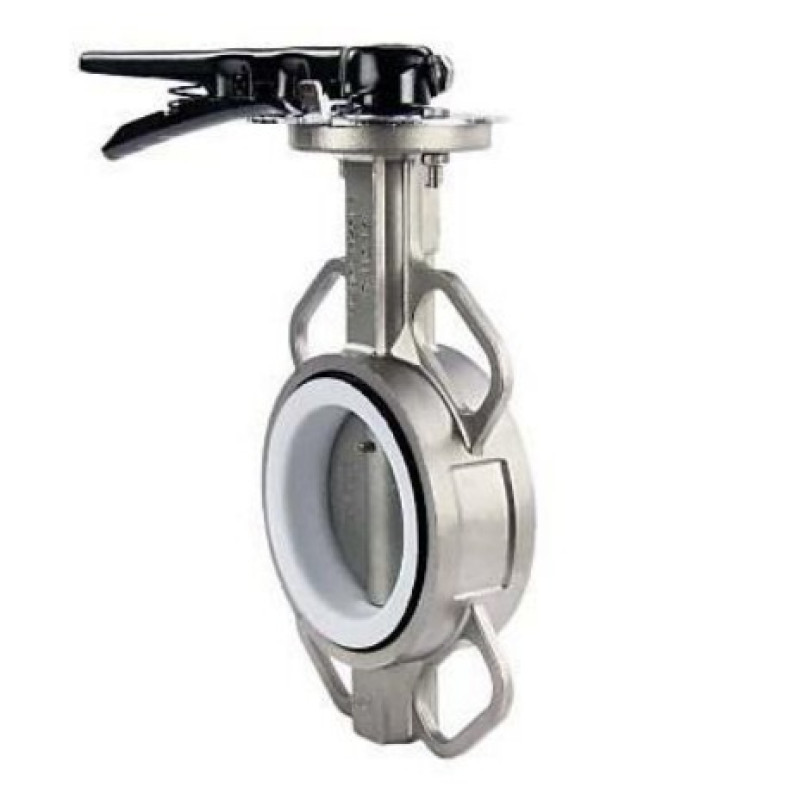 Затвор дисковый поворотный DN.ru WBV3232N-2W-Fb-H Ду125 Ру16 межфланцевый, корпус - нержавеющая сталь 316L, диск - нержавеющая сталь 316L, уплотнение - NBR, с рукояткой, квадрат 14х14, F07