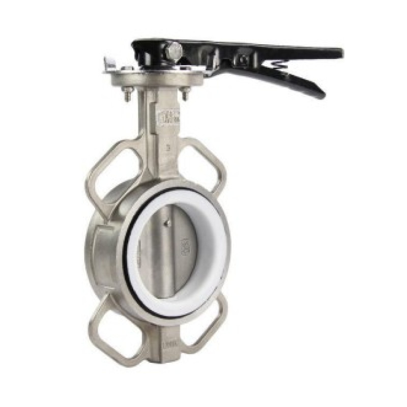 Затвор дисковый поворотный DN.ru WBV3232P-2W-Fb-H Ду100 Ру16 межфланцевый, корпус - нержавеющая сталь 316L, диск - нержавеющая сталь 316L, уплотнение - PTFE, с рукояткой, квадрат 11х11, F05
