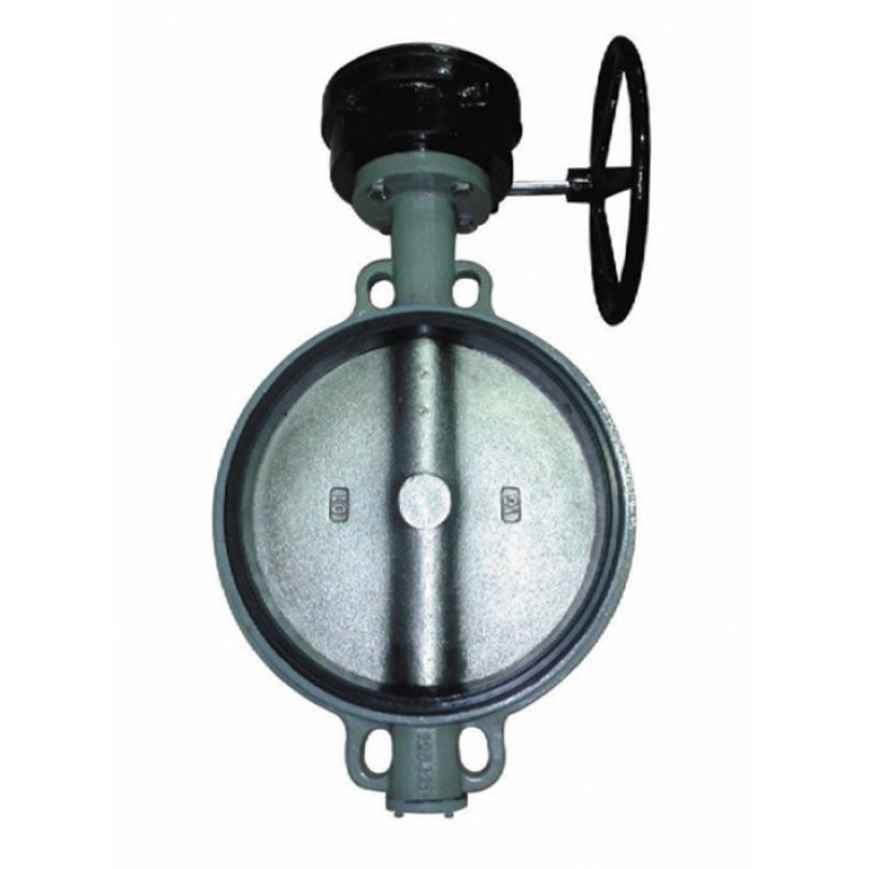 Затвор дисковый поворотный, межфланцевый, стяжной (тип Wafer), корпус из чугуна, затвор из стали никелированный, или из нержавеющей стали, чугуна. Для размеров DN350-DN600 механизм поворота с редуктором. PN16.