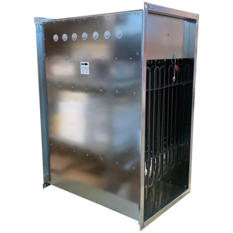 Прямоугольные канальные электронагреватели (калориферы), для прямоугольного вентканала, применяются как основные подогреватели воздуха в системах приточной вентиляции, а также как вторичный подогреватель в отдельных помещениях, где требуется индивидуальная регулировка температуры. Корпус изготавливается из оцинкованной стали.