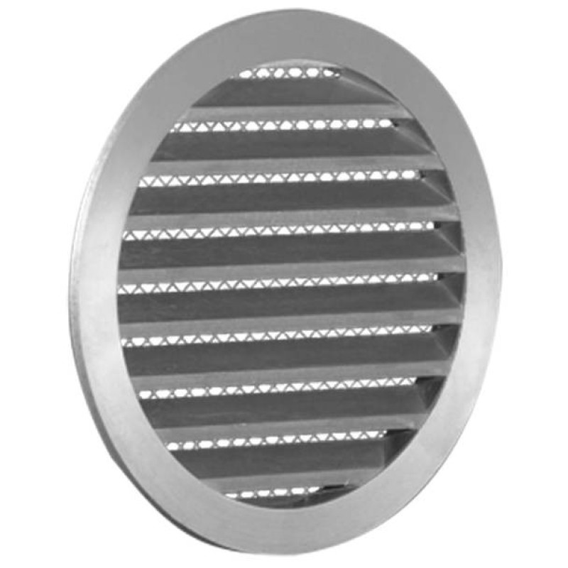 Алюминиевая наружная решетка для круглых каналов предназначена для перекрытия входных внешних отверстий соответствующего диаметра. Решетка препятствует попаданию в воздуховоды воды, а также, за счет установленной сетки, различных предметов.
