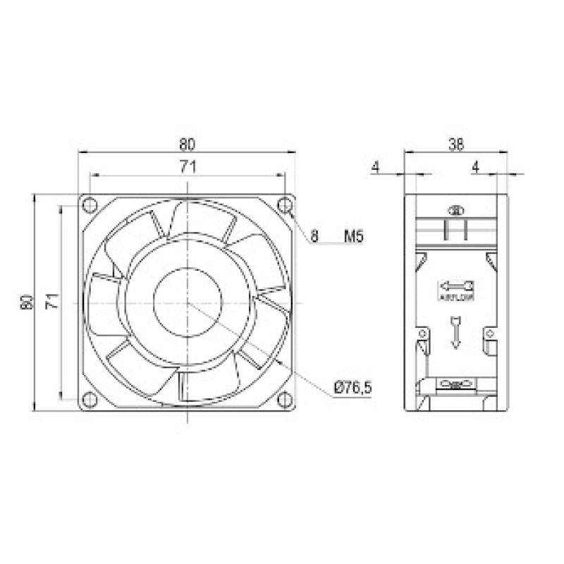 Вентилятор kippribor VENT-8038.220VAC.7MSHB