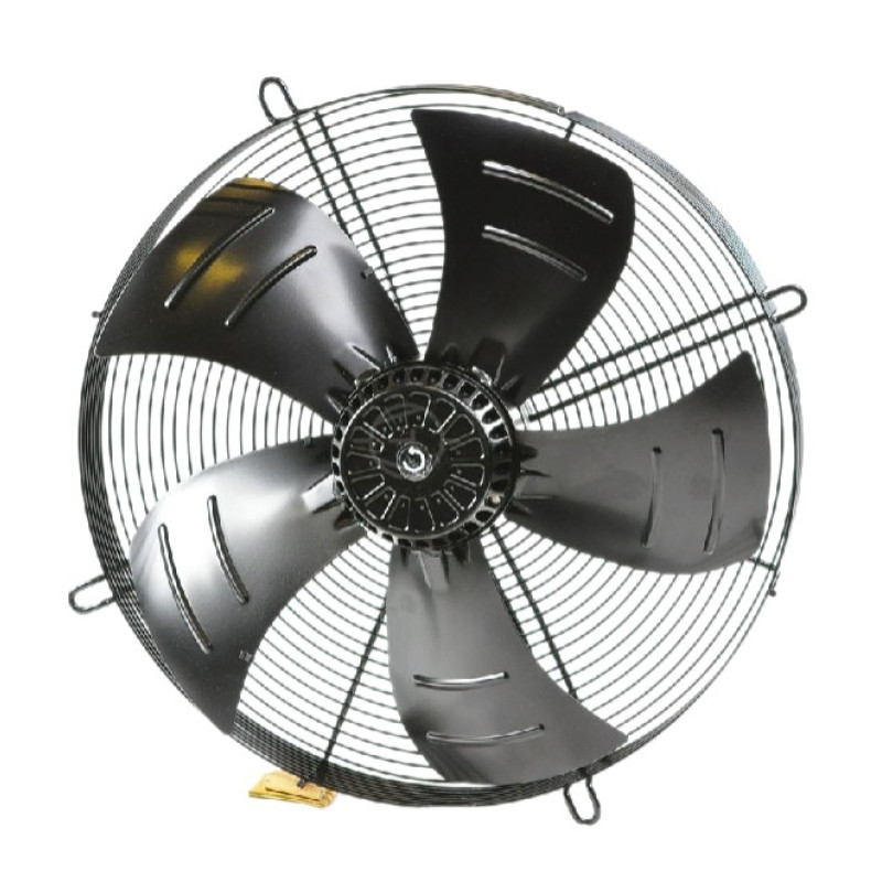 Вентилятор осевой Weiguang YWF6D-500S в сборе с защитной решеткой. Диаметр рабочего колеса 500 мм, производительность 5850 м.куб/час, при напряжении питания 380В/50Гц, потребляемая мощность 195 Вт, скорость вращения 900 об/мин, направление потока воздуха "S"-всасывание. Применяются в составе систем вентиляции, кондиционирования, теплообменных аппаратов в холодильной технике. Имеют встроенную защиту электродвигателя, допустимая температура окружающей среды -30...+60 °C, степень защиты IP54. Диаметр ротора - 137 мм, толщина лопасти - 35 мм.