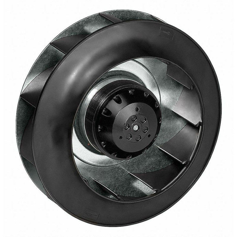 Радиальный вентилятор R2E250-RA50-01 бренда Ebmpapst имеет компоновку с наружным ротором, установленным в рабочее колесо. Данная модель производится в спиралевидном корпусе «улитка» с загнутыми назад лопатками. При такой конструкции лопасти «гладят» воздух, что значительно снижает уровень шума работающего вентилятора, но уменьшается динамический напор воздуха.