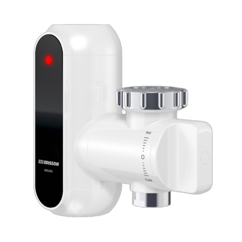 Проточный водонагреватель в оригинальном корпусе для встраивания в кухонную мойку с индикацией нагрева и регулятором производительности.