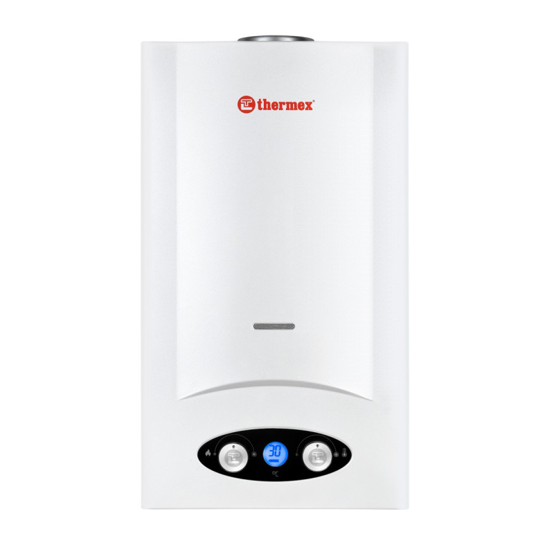 Газовая колонка Thermex (Термекс) G 20 D Eco номинальной мощностью 20 кВт относится к серии Grand с принудительным отводом газов, компактна и удобна в эксплуатации. Габаритные размеры модели (ВхШхГ) – 610х350х185 мм. В проточном водонагревателе применена автоматическая электронная система зажигания, получающая питание от двух батареек R20 с напряжением 1,5 В, расположенных в батарейном отсеке. Данная модель оснащена рядом современных устройств, обеспечивающих безопасность и надежность при эксплуатации. Ионизационный электрод контроля пламени – обеспечивает контроль пламени горелки и автоматическое отключение подачи газа на горелку при ее погасании.