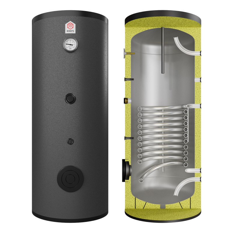 Бойлер косвенного нагрева KRATS 1BG-1000л, 1 змеевик, 10 бар, с возможностью подключения тэна